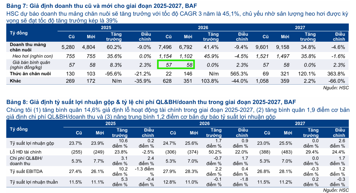 - Triển vọng giá heo hơi: Lũ lụt và dịch tả heo châu Phi khiến nguồn cung heo nái giảm mạnh, dự kiến giá heo sẽ tăng trở lại trong 3–6 tháng tới, mang lại lợi ích cho BAF nhờ hệ thống trang trại hiện đại ít bị ảnh hưởng.