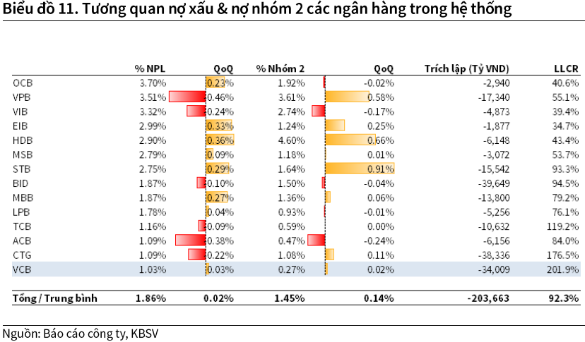 Trong 9 tháng, chi phí trích lập dự phòng chỉ khoảng 2.3 nghìn tỷ đồng, giảm 30% so với cùng kỳ và thấp hơn nhiều so với dự báo trước đó.