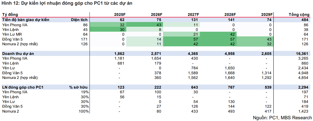 Triển vọng giai đoạn 2025-2027 trở nên rõ nét hơn khi lợi nhuận ròng được dự phóng lần lượt đạt 819 tỷ đồng, 1,071 tỷ đồng và 1,433 tỷ đồng. Tốc độ tăng trưởng tương ứng đạt 78%, 31% và 34%, phản ánh giai đoạn tăng tốc hiếm có trong mô hình đa ngành của PC1. MBS cho biết cổ phiếu vẫn đang giao dịch dưới mức định giá trung bình 2 năm và chưa phản ánh hết triển vọng từ khu công nghiệp cũng như bất động sản nhà ở.