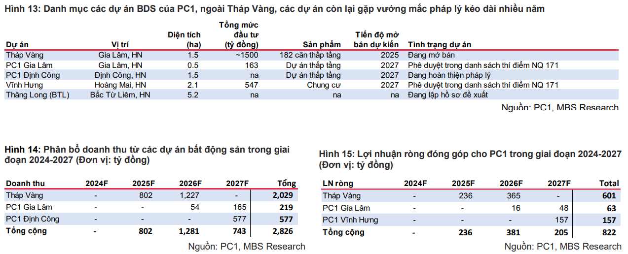 Các dự án PC1 Gia Lâm, Định Công và Vĩnh Hưng đã được đưa vào danh sách thí điểm theo Nghị quyết 171, mở ra triển vọng pháp lý khả quan từ 2026 và ghi nhận doanh thu từ 2027.