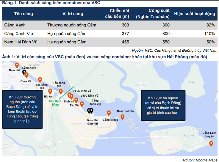 Trong năm 2025, sản lượng bốc dỡ của VSC dự kiến đạt 1.38 triệu Teu, tăng 17%. Trong đó, cảng Nam Hải Đình Vũ dự kiến tăng 61.4% khi hiệu suất khai thác tăng từ 50% lên 81%. Cảng Xanh Vip tăng 12% nhờ ưu thế khách hàng Evergreen duy trì ổn định nguồn hàng. Ngược lại, cảng Xanh gần như đi ngang vì vị trí thượng nguồn kém thuận lợi.