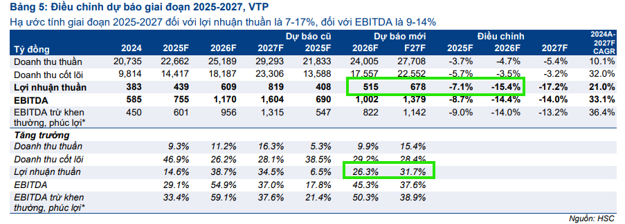 Theo phân tích sơ bộ dài hạn của HSC, LSLP có thể đóng góp khoảng 40% vào tổng Lợi nhuận ròng và EBITDA của VTP vào năm FY30. Sự chuyển dịch cơ cấu lợi nhuận này củng cố luận điểm về tiềm năng tăng trưởng vượt trội của VTP trong dài hạn.
