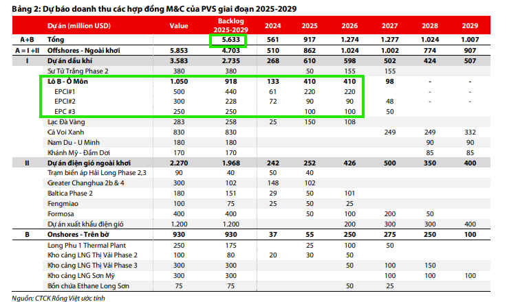 • Động lực tăng trưởng chính tiếp tục đến từ mảng cơ khí dầu khí và chế tạo (M&C), nơi các dự án trọng điểm trong nước như Lô B – Ô Môn, Lạc Đà Vàng và Sư Tử Trắng giai đoạn 2B đạt được nhiều cột mốc quan trọng, đồng thời PVS cũng mở rộng mạnh mẽ triển vọng quốc tế thông qua các dự án điện gió tại Châu Âu, Đài Loan, Hàn Quốc, Nhật Bản và Úc.