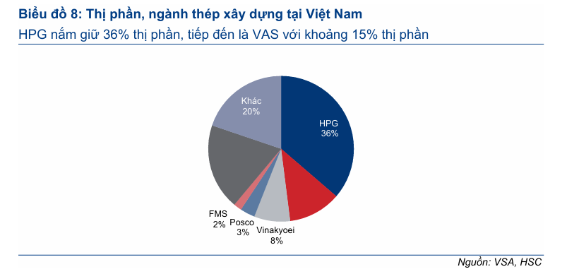 Về vấn đề cạnh tranh, việc thành lập Vinmetal – công ty con của Vingroup – tập trung vào sản xuất thép là động thái làm tăng mức độ cạnh tranh trong nước. Tuy nhiên, HSC tin rằng vị thế thị trường của HPG sẽ không bị ảnh hưởng đáng kể trong ngắn hạn. Để trở thành đối thủ cạnh tranh đủ sức nặng trong ngành thép đòi hỏi phải có vốn lớn, chuyên môn kỹ thuật sâu rộng và thời gian dài để xây dựng quy mô. Ngay cả khả năng Vinmetal thâu tóm Pomina, HSC nhận định Pomina cần một khoản vốn lớn để nâng cấp các cơ sở sản xuất lỗi thời và tái cơ cấu toàn diện để phù hợp với mục tiêu thép dài hạn của Vingroup. Do đó, rủi ro cạnh tranh vẫn còn hạn chế trong ngắn và trung hạn.