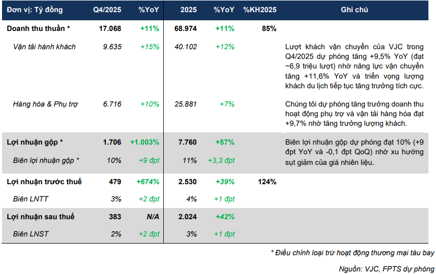 VJC: Lợi Nhuận Q4/2025 Dự Báo Tăng +674% YoY, FPTS Khuyến Nghị Theo Dõi