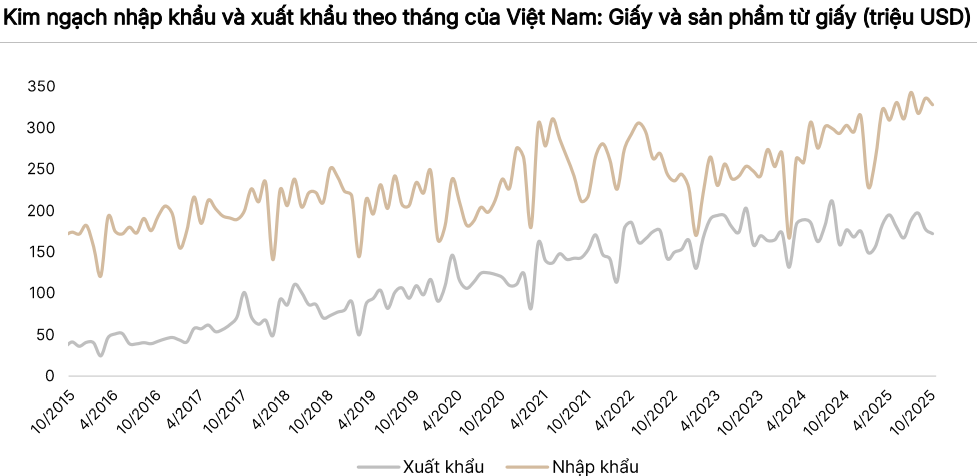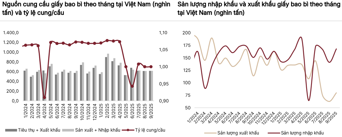 Ngành giấy bao bì đang bước vào giai đoạn tái cân bằng khi khoảng 1.9 triệu tấn công suất mỗi năm tại các nhà máy cũ ở miền Bắc dừng hoạt động, tương đương khoảng 26% tổng công suất thiết kế trên toàn quốc. Trong quý 3 năm 2025, sản lượng tiêu thụ nội địa tăng 23.1% so với cùng kỳ lên khoảng 1.63 triệu tấn, trong khi sản lượng nhập khẩu giảm 4.3%, giúp thị trường lấy lại trạng thái cân bằng và hỗ trợ giá bán phục hồi từ cuối năm 2025.