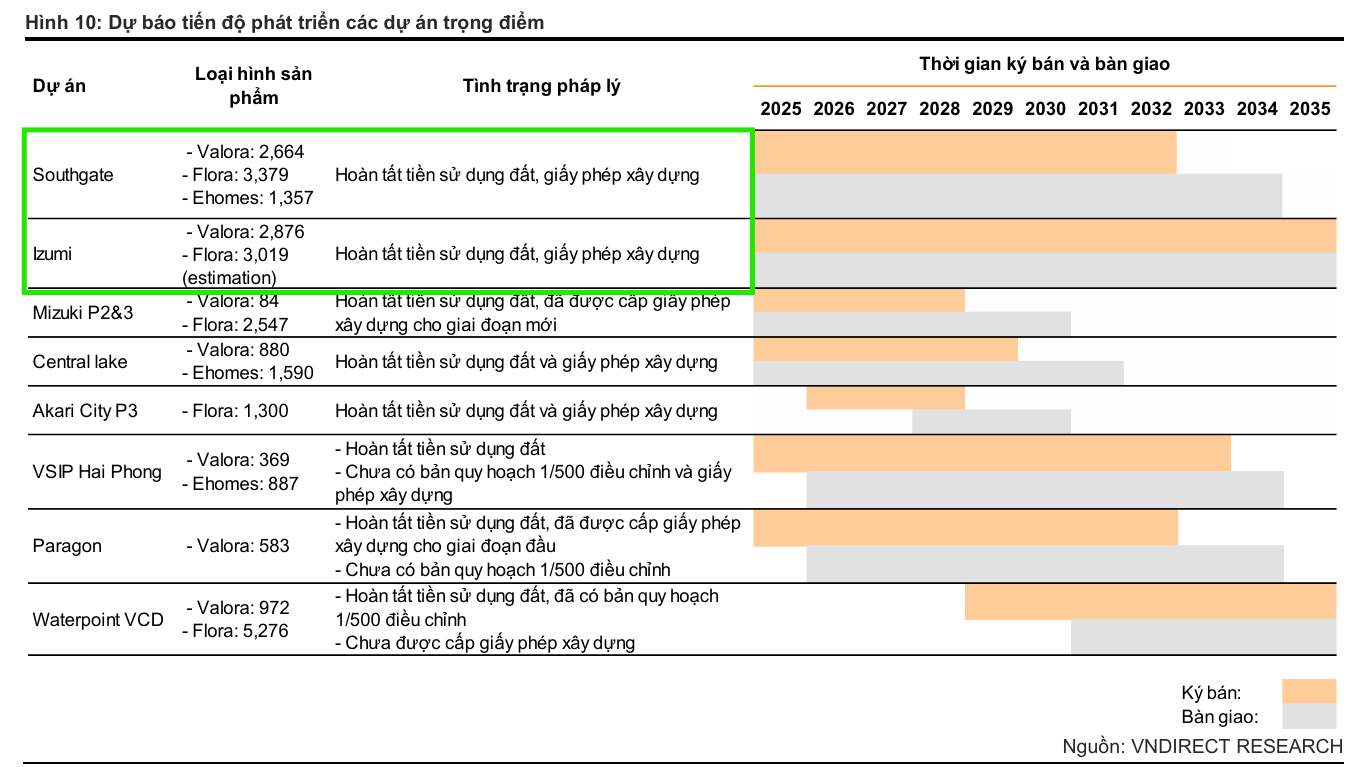 | Dự án Trọng điểm 2026 | Southgate, Mizuki, Izumi. | Mizuki, Izumi, Paragon, Southgate, Anzen, Cần Thơ. | Southgate, Izumi City, Paragon. | Không đề cập cụ thể |