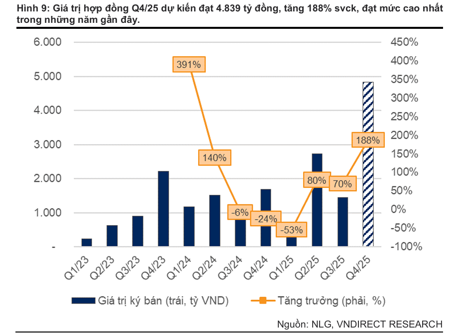 Trong khi đó, Vietcap dự báo lợi nhuận quý 4/2025 của NLG đạt 356 tỷ đồng.