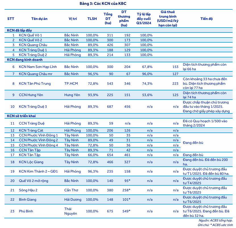 KBC được đánh giá là một trong những doanh nghiệp hưởng lợi lớn từ làn sóng dịch chuyển sản xuất toàn cầu vào Việt Nam, với tệp khách thuê chất lượng cao (LG, Foxconn, Goertek) và quỹ đất chiến lược lớn tại khu vực phía Bắc.