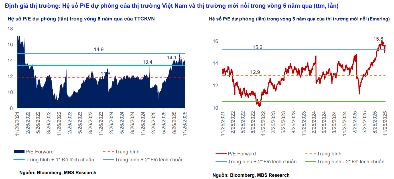 - Yếu tố vĩ mô hỗ trợ: NHNN bơm ròng kỷ lục gần 73,900 tỷ đồng; chính sách tài khóa đẩy mạnh đầu tư công; Fed được kỳ vọng hạ lãi suất trong tháng 12, tạo môi trường nới lỏng tiền tệ thuận lợi.