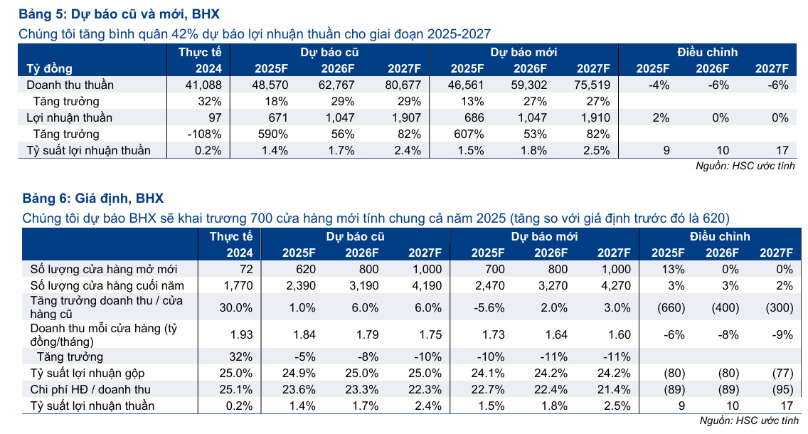 SSI và HSC đều điều chỉnh tăng dự báo lợi nhuận của BHX cho giai đoạn 2025-2026 nhờ sự cải thiện biên lợi nhuận này.