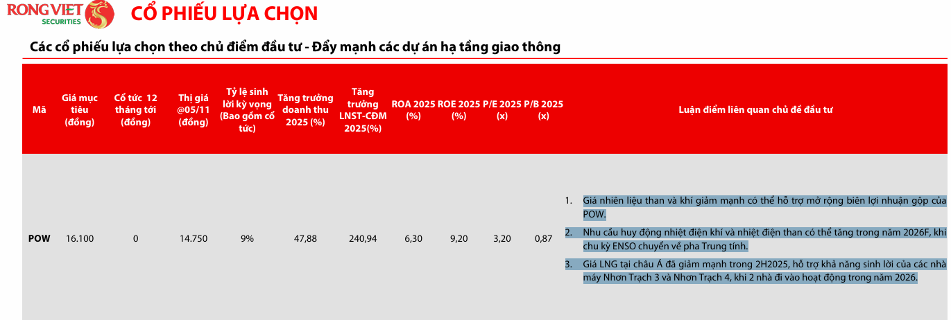 VDSC (7.11.2025) trong báo cáo chiến lược quý 3 đưa ra mục tiêu giá cho POW là 16,100 đồng.