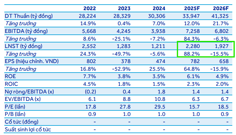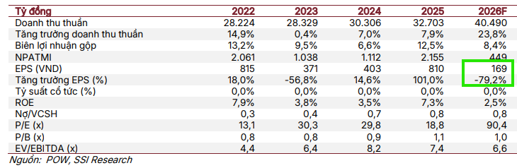Tuy nhiên, giới phân tích vẫn giữ quan điểm thận trọng về hiệu quả năm đầu tiên. Theo ước tính của SSI, Lợi nhuận sau thuế thuộc về cổ đông công ty mẹ (NPATMI) năm 2026 có thể giảm mạnh tới 79% so với năm 2025, xuống còn 449 tỷ đồng.