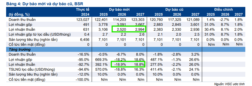 HSC nhận định rằng BSR đã vượt qua giai đoạn khó khăn nhất. Lợi nhuận thuần Quý 3/2025 cao hơn kỳ vọng, giúp Lợi nhuận thuần 9 tháng đầu năm 2025 hoàn thành 90% dự báo cả năm của HSC. Công ty chứng khoán này dự báo lợi nhuận thuần Quý 4/2025 đạt 954 tỷ đồng.