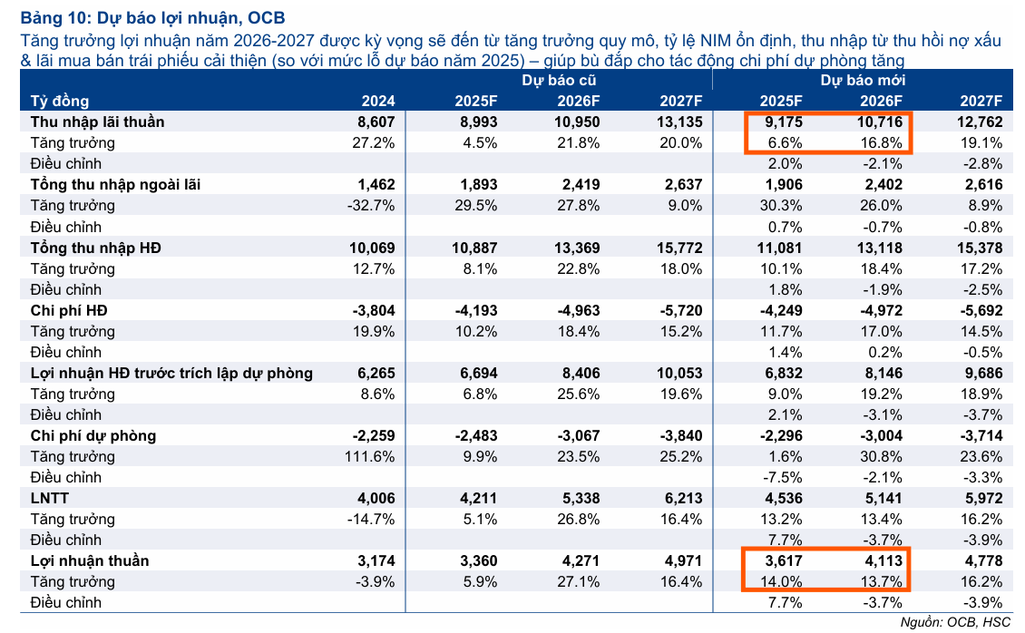 Bên cạnh đó, HSC đánh giá tỷ lệ NIM ổn định hơn kể từ năm 2026. Thu nhập từ thu hồi nợ xấu vững chắc. Hoạt động mua bán trái phiếu gần hòa vốn trở lại (sau khi ước tính lỗ trong năm 2025).