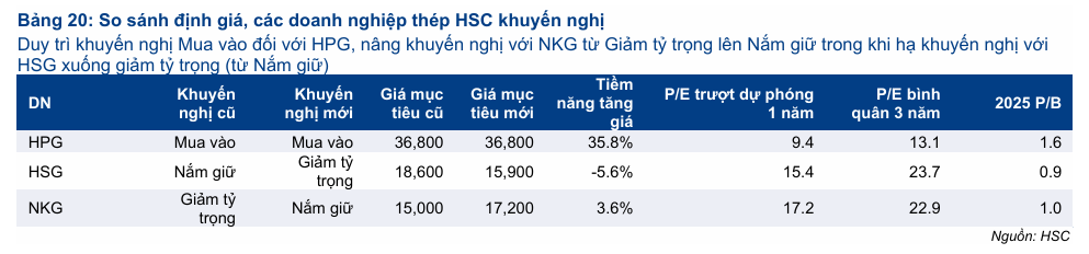 Triển vọng 2026: HSC dự báo nhu cầu thép toàn ngành tăng 12.6% (38.1 triệu tấn), lợi nhuận HPG giai đoạn 2025–2027 tăng trưởng kép 33.3%/năm; giá mục tiêu duy trì 36,800 đồng/cp với khuyến nghị Mua vào.