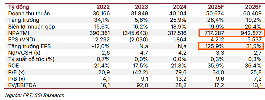 SSI dự báo lợi nhuận sau thuế thuộc cổ đông công ty mẹ (NPATMI) sẽ đạt 717 tỷ đồng trong năm 2025 (+126% yoy) và 943 tỷ đồng trong năm 2026 (+32% yoy).