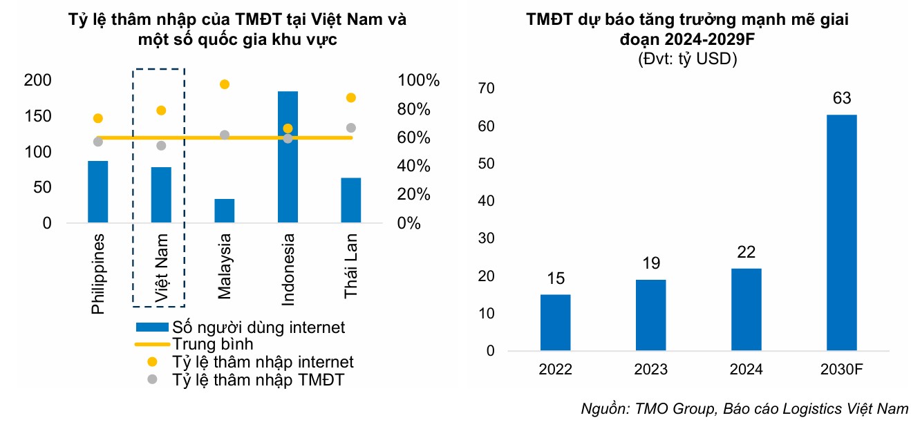 Thương mại điện tử tại Việt Nam được dự báo sẽ duy trì tốc độ tăng trưởng kép hằng năm (CAGR) ở mức 19.2% trong giai đoạn 2024-2030, đạt quy mô gần 63 tỷ USD.