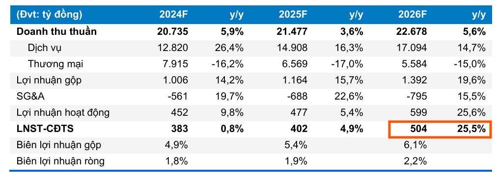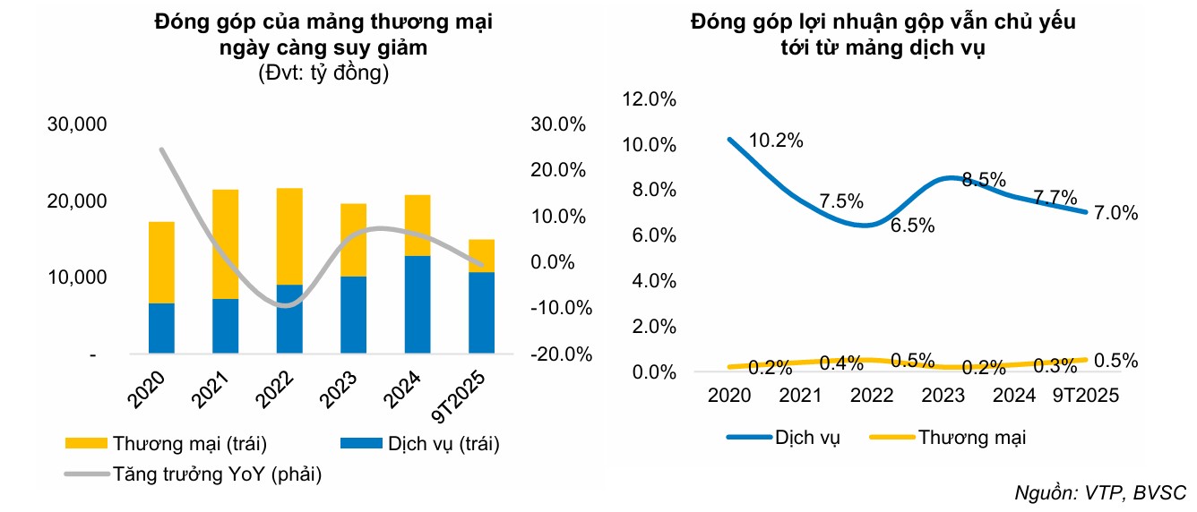 Sự suy giảm tỷ trọng mảng thương mại xuống còn 28.6% được đánh giá là bước đi hợp lý nhằm tập trung nguồn lực vào các phân khúc có biên lợi nhuận tốt hơn và bền vững hơn.