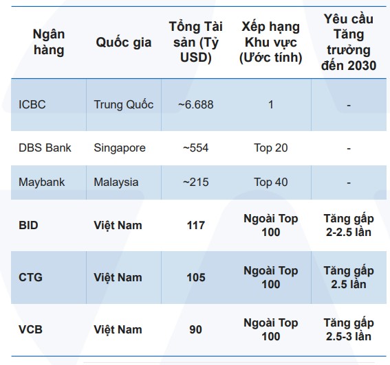 Ngành Ngân hàng được dự báo là nhóm hưởng lợi trực tiếp nhất khi nút thắt về vốn điều lệ chính thức được tháo gỡ. Trong khi Vietcombank tiếp tục khẳng định vị thế dẫn đầu và mục tiêu lọt vào danh sách 100 ngân hàng lớn nhất châu Á với chất lượng tài sản vượt trội, thì BIDV và VietinBank lại là những cái tên nhận được cú hích lớn nhất.