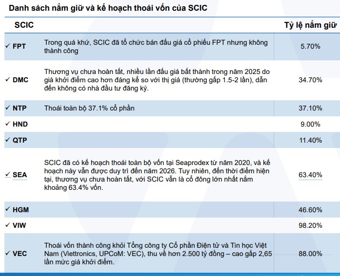 Cuối cùng, làn sóng thoái vốn từ Tổng công ty Đầu tư và Kinh doanh vốn nhà nước (SCIC) sẽ trực tiếp thay đổi cung cầu trên thị trường. Việc chuyển đổi mô hình từ “giữ hộ vốn” sang “kinh doanh vốn” buộc tổ chức này phải đẩy nhanh tiến độ bán vốn tại các doanh nghiệp thương mại để tái đầu tư vào công nghệ và năng lượng xanh.