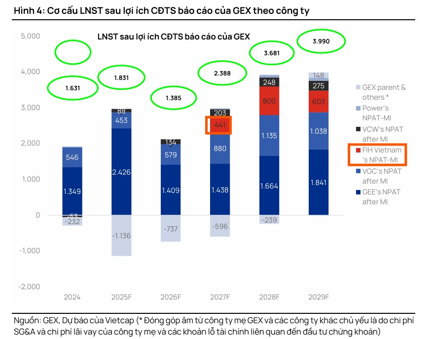 Vietcap đánh giá mảng kinh doanh mới này sẽ trở thành trụ cột lợi nhuận quan trọng, dự kiến đóng góp khoảng 20% vào tổng lợi nhuận sau thuế sau lợi ích cổ đông thiểu số của tập đoàn trong giai đoạn 2025–2029.