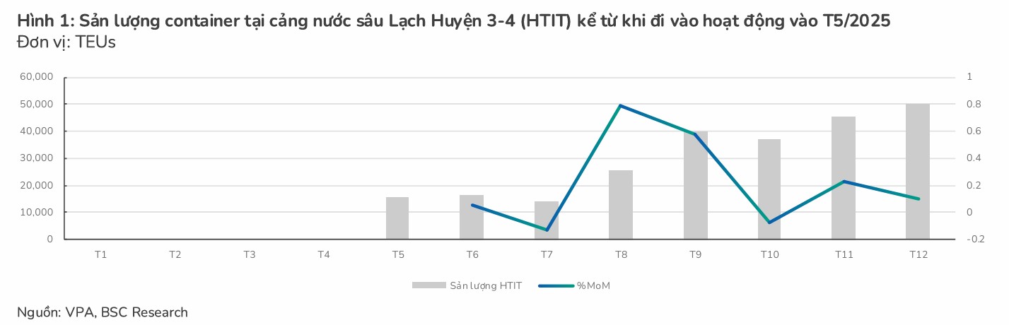 Trong năm 2026, BSC dự báo sản lượng container tại Lạch Huyện 3-4 có thể đạt hiệu suất 40% nhờ hai yếu tố: hấp thụ lượng hàng dư thừa từ cảng TC-HICT vốn đã quá tải và sự hợp tác chiến lược với hãng tàu lớn nhất thế giới MSC.