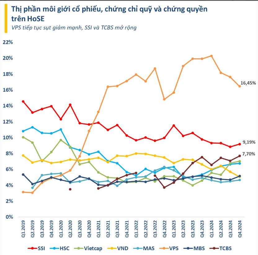 Động lực tăng trưởng chính đến từ sự bùng nổ của mảng môi giới với doanh thu tăng 40%, nhờ tận dụng tốt sự phục hồi của thanh khoản thị trường và duy trì thị phần top 4 trên sàn HOSE (thị phần 6.7%).