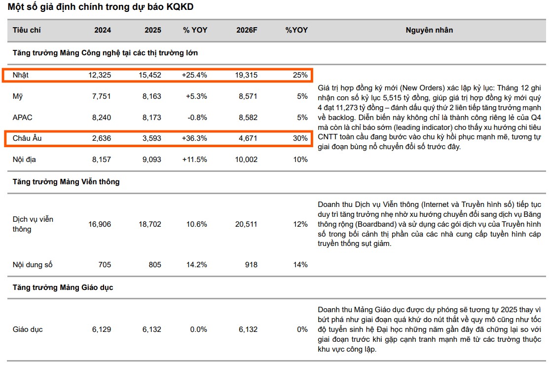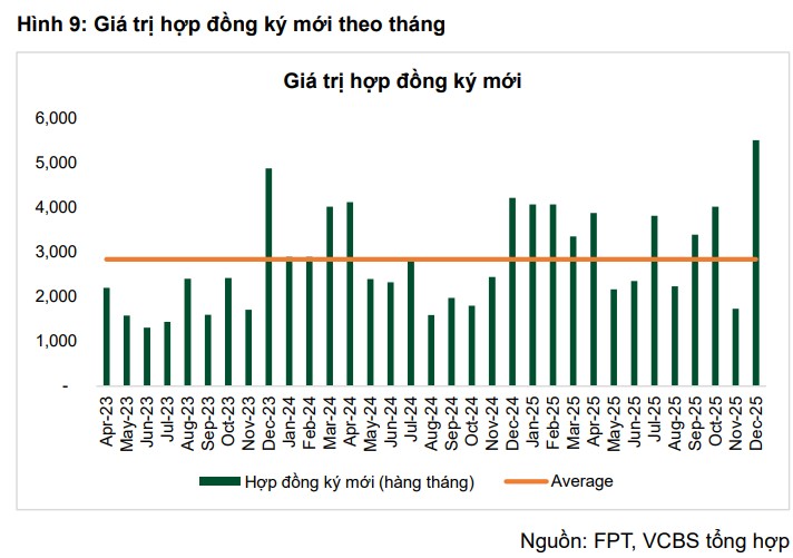 VCBS đánh giá giá trị hợp đồng ký mới (backlog) là chỉ báo sớm quan trọng nhất cho sự tăng trưởng của FPT trong năm 2026.