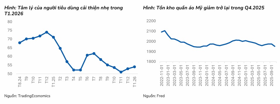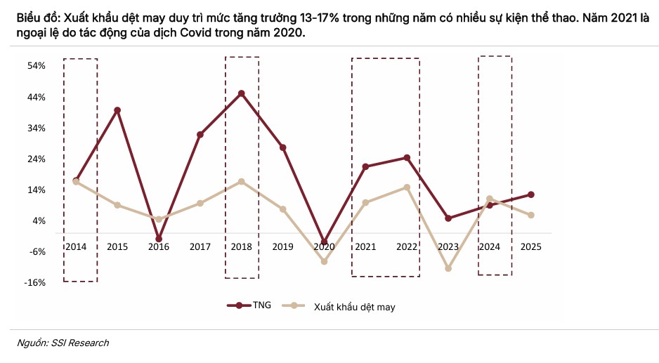 Thêm vào đó, lượng tồn kho quần áo tại Mỹ đang ở vùng thấp nhất kể từ năm 2022, buộc các nhà phân phối phải tăng cường nhập hàng để phục vụ nhu cầu tiêu dùng. Các sự kiện thể thao lớn dự kiến diễn ra trong năm 2026 cũng được kỳ vọng là “ngòi nổ” thúc đẩy nhu cầu đồ thể thao – mảng thế mạnh của TNG.