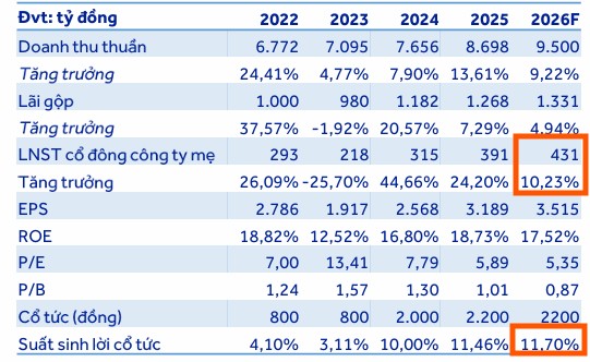 | Dự phóng LNST 2026 | 436 tỷ đồng | 428 tỷ đồng | 431 tỷ đồng |