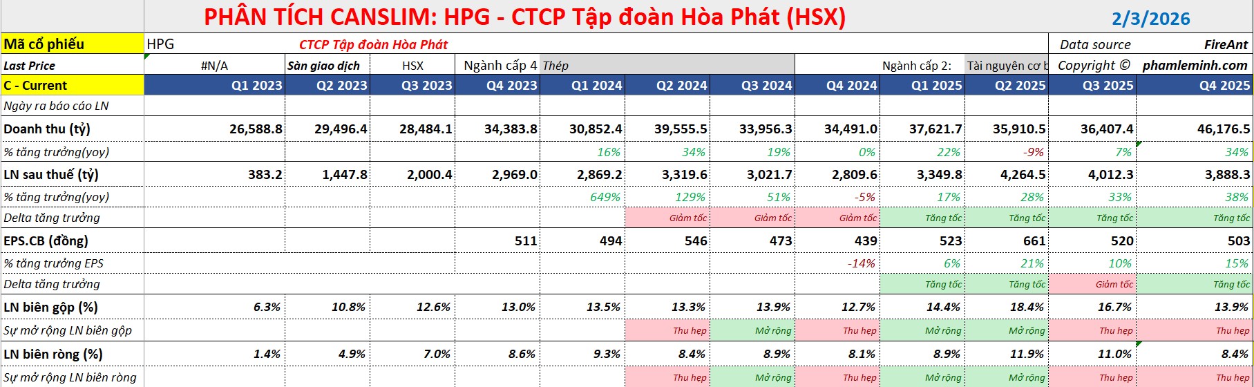 Điểm sáng lớn nhất của HPG trong quý 4/2025 nằm ở mảng thép với mức tăng trưởng doanh thu ấn tượng 34% so với cùng kỳ. Sản lượng thép thô trong Q4/25 đạt mức kỷ lục 3 triệu tấn, tăng 36% yoy. L