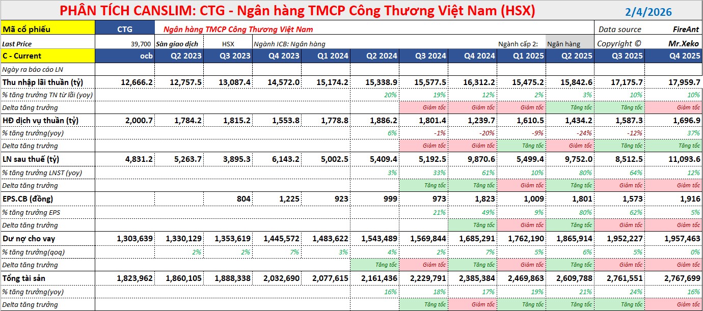 Chất lượng tín dụng của CTG ghi nhận sự cải thiện rõ rệt với tỷ lệ nợ xấu (NPL) giảm xuống còn 1.1% (so với mức 1.24% cùng kỳ).