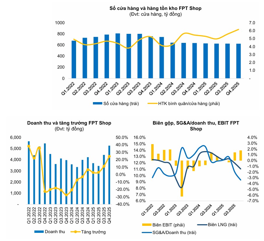 Điểm sáng bất ngờ trong quý 4/2025 đến từ FPT Shop khi chuỗi này ghi nhận mức tăng trưởng doanh thu 25%, cao hơn nhiều so với mức tăng chung cả năm.
