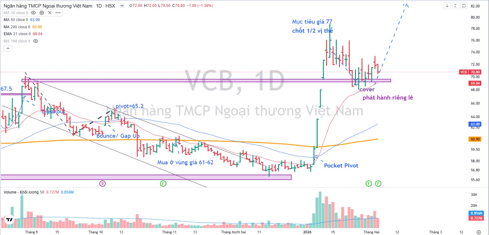Tuy nhiên, với vị thế dẫn đầu và nền tảng tài chính an toàn nhất ngành, VCB vẫn là cổ phiếu ưu tiên cho các mục tiêu đầu tư dài hạn.