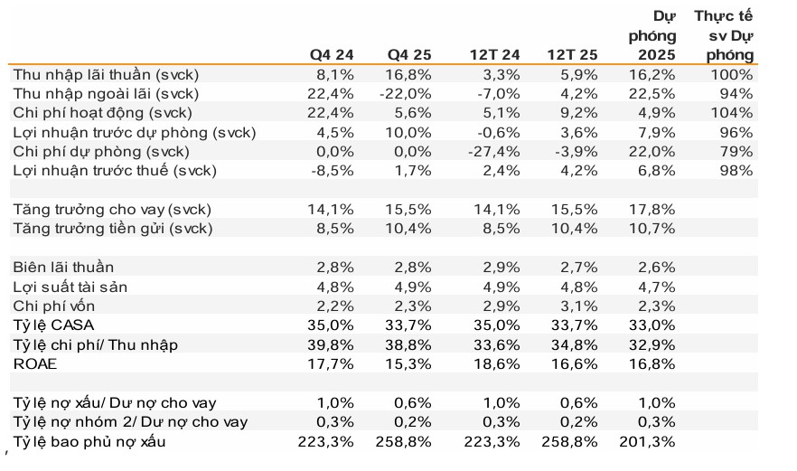 | Chỉ số tài chính VCB | 2024 | 2025 | Thay đổi (YoY) |