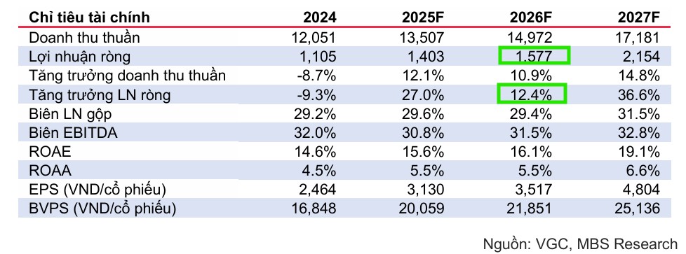 Các công ty chứng khoán như MBS, Vietcap và SHS đều đồng thuận rằng 2026 sẽ là năm VGC bước vào pha tăng trưởng “chất” hơn nhờ hai động lực chính: