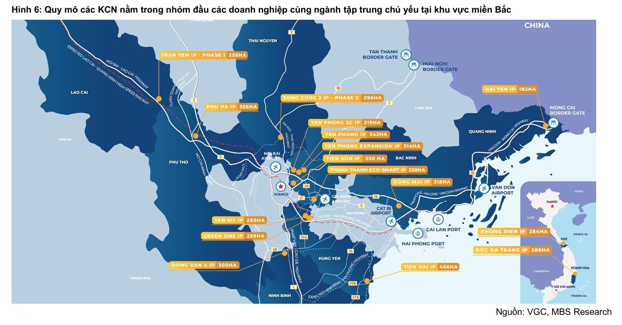 nhóm khách hàng công nghệ, kích cầu trực tiếp cho KCN. VGC có những lợi thế nhất định với các KCN nằm tại thủ phủ bán dẫn, linh kiện Hạng 1 như Bắc Ninh, Hưng Yên, cũng như các khu vực vệ tinh Hạng 2 như Thái Nguyên, Phú Thọ.