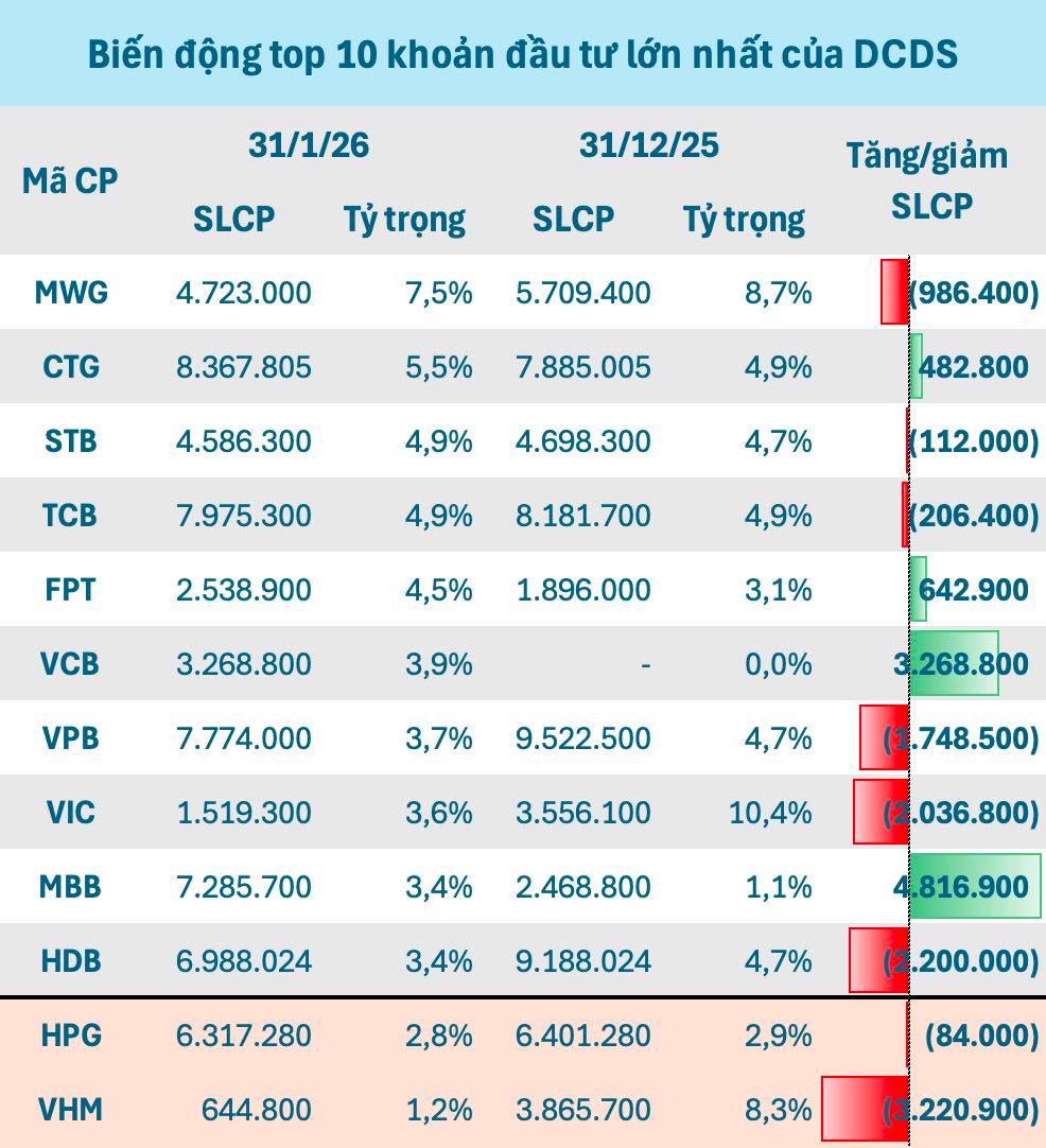Trong một động thái đáng chú ý, Dragon Capital bán VHM và VIC, chuyên sang mua ròng hơn 3 triệu cổ phiếu VCB và gần 5 triệu cổ phiếu MBB trong tháng 1.2026.