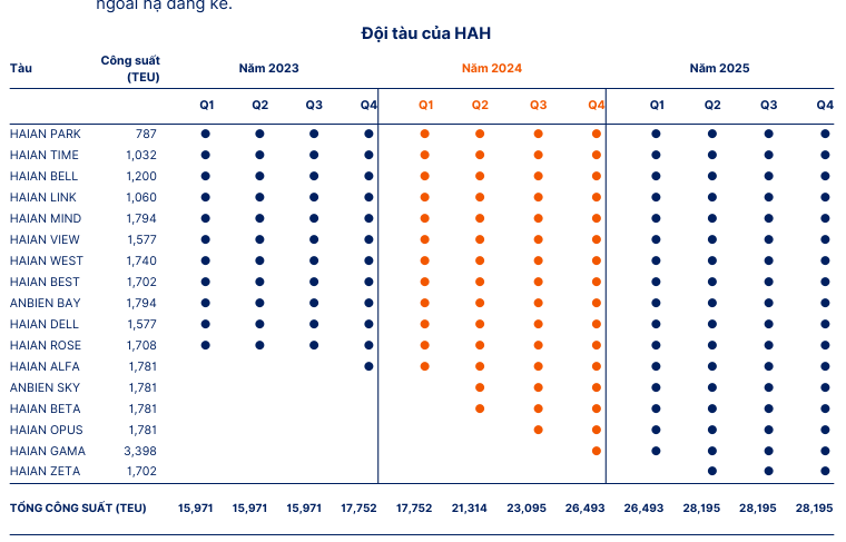 Mảng cho thuê tàu định hạn đã trở thành “cứu cánh” và là trụ cột lợi nhuận chính cho HAH. Tính đến cuối năm 2025, công ty có 11 trên tổng số 18 tàu đang cho thuê định hạn với mức giá bình quân cao, khoảng 22,500 USD/ngày.