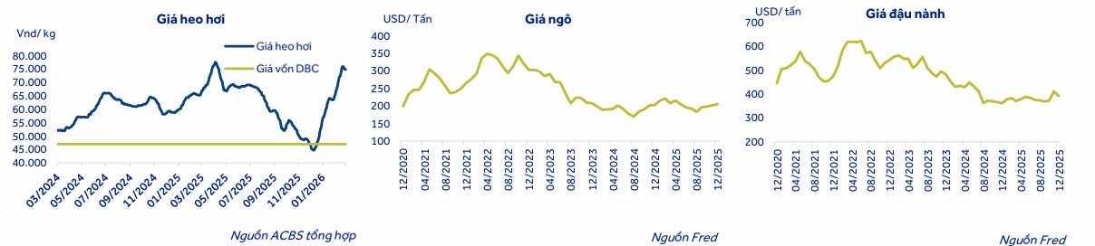 Thành quả này đến từ sự cộng hưởng của nhiều yếu tố thuận lợi: giá heo hơi phục hồi mạnh mẽ, có thời điểm tiệm sát mốc 80,000 đồng/kg, kết hợp cùng giá các loại nguyên liệu đầu vào như ngô và đậu nành duy trì ở vùng thấp kỷ lục trong nhiều năm.