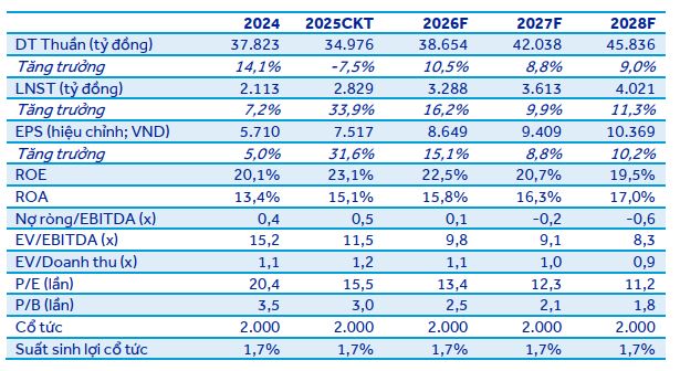 | Dự phóng LNST 2026 | 3,570 tỷ (+26%) | 3,288 tỷ (+16,2%) | 3,182 tỷ (+12,3%) | 3,451 tỷ (+23%) | Chưa nêu cụ thể |