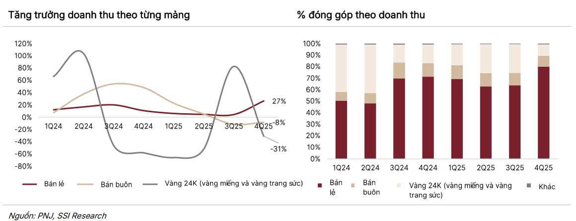 Sự tăng trưởng này đến từ việc PNJ chủ động dịch chuyển cơ cấu sản phẩm, tập trung vào mảng bán lẻ trang sức có biên lợi nhuận cao để bù đắp cho sự thiếu hụt của vàng miếng.