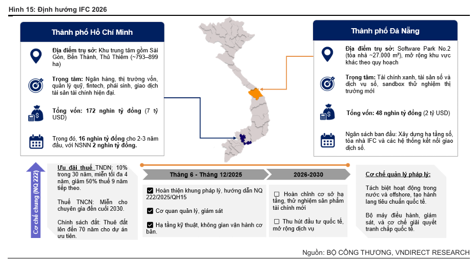 Theo quan điểm của VNDirect, FTZ không chỉ là một không gian ưu đãi thuế mà còn là một “sandbox” thể chế, nơi các rào cản về hải quan và logistics được tháo gỡ để tạo ra tốc độ lưu thông hàng hóa tối đa. FTZ sẽ giúp cho IFC (trung tâm tài chính) đặt tại Thủ Thiêm, TP.HCM vận hành một cách thực chất.