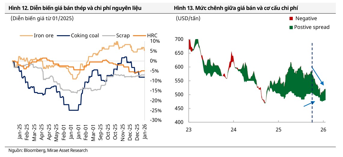 Động lực chính: Giá bán HRC hợp đồng tháng 3/2026 lên 519–520 USD/tấn,, giúp biên lợi nhuận gộp cải thiện. Công suất nhà máy Dung Quất 2 nâng tổng sản lượng HRC lên 6 triệu tấn/năm.