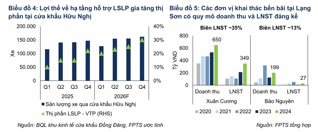 Đặc biệt, doanh thu mảng logistics biên giới được dự báo sẽ tăng trưởng đột phá 175% nhờ việc gia tăng thị phần tại cửa khẩu Hữu Nghị thông qua vận hành kho ngoại quan và hạ tầng bến bãi hiện đại.