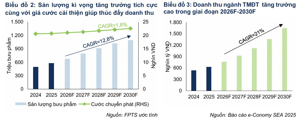 Động lực tăng trưởng chính trong giai đoạn 2026–2030 sẽ đến từ mảng chuyển phát với mức tăng trưởng sản lượng dự phóng đạt 12.8%/năm nhờ xu hướng thương mại điện tử ngoài sàn và dịch vụ fulfillment.