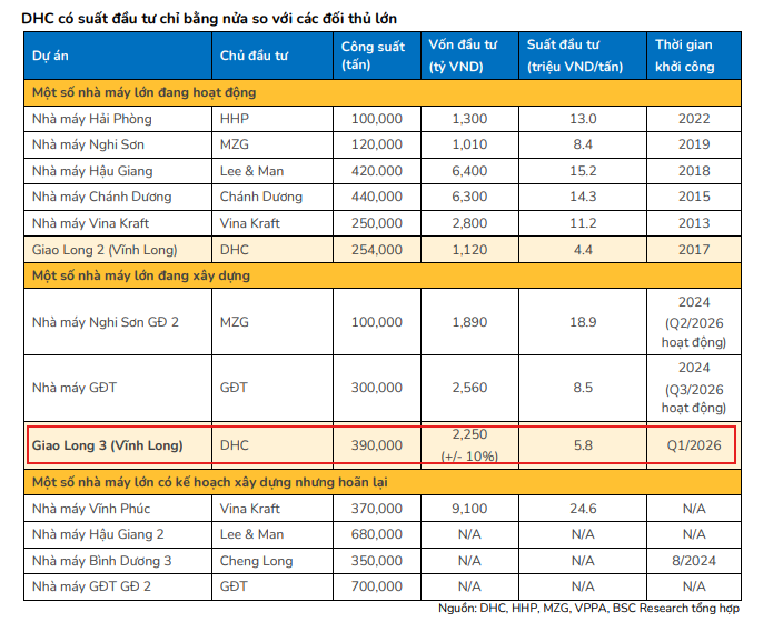 Trong những năm gần đây, doanh nghiệp đối mặt với tình trạng thiếu công suất khi nhu cầu hồi phục. Việc tăng gấp đôi công suất không chỉ giúp giải quyết điểm nghẽn tăng trưởng mà còn đặt DHC vào một mặt bằng quy mô hoàn toàn mới so với giai đoạn trước.