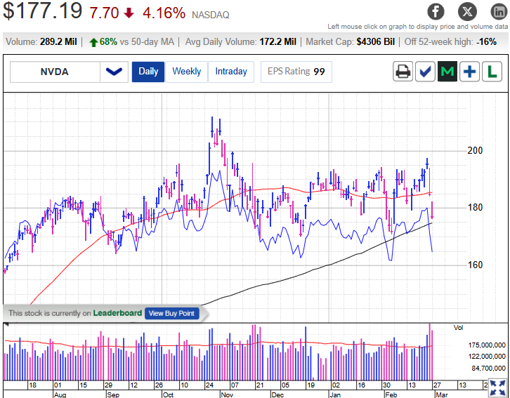 Những lo ngại càng gia tăng vào tháng Hai khi cổ phiếu của các ông lớn trong lĩnh vực trí tuệ nhân tạo, dẫn đầu là Microsoft ( MSFT ), Meta Platforms ( META ), Amazon ( AMZN ) và công ty mẹ của Google là Alphabet ( GOOGL ), giảm mạnh, ngay cả sau khi các cổ phiếu công nghệ khổng lồ này công bố kết quả kinh doanh khả quan. Ngay cả báo cáo lợi nhuận vượt trội của Nvidia ( NVDA ) hôm thứ Tư, nổi bật với mức tăng trưởng lợi nhuận ròng 94%, cũng chỉ gây ra phản ứng khá thờ ơ trên Phố Wall.