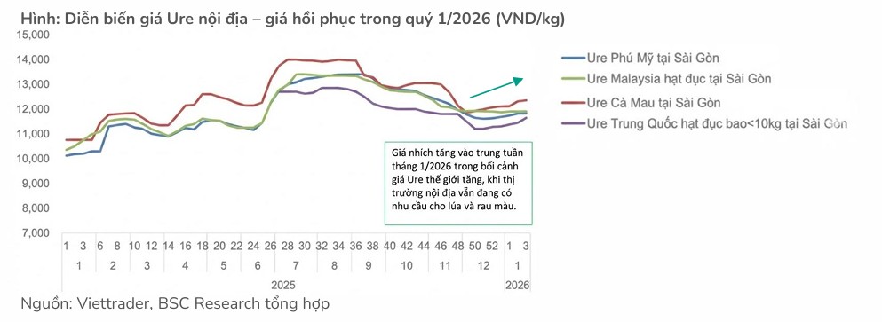 Giá Ure thế giới sau giai đoạn neo cao ở quý 1/2026 nhờ nhu cầu mùa vụ Đông Xuân và hạn chế xuất khẩu từ Trung Quốc, dự kiến sẽ chịu áp lực điều chỉnh giảm khoảng 3-4% khi nguồn cung từ Trung Quốc quay trở lại thị trường từ quý 2.